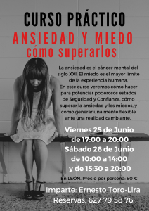 Impartido por el Profesor ERNESTO TORO-LIRA STAHL, Psicólogo, autor de varios libros, coach antiansiedad, Profesor Honorario de la Facultad de Medicina de la Universidad Autónoma de Madrid, en el área de Psiquiatría, formador de profesionales en Reprogramación Neurohipnótica, excelente y divertido orador con más de 30 años de experiencia ayudando a centenares de personas a superar toda clase de fobias, miedos y estados de ansiedad de forma rápida, eficaz y definitiva.